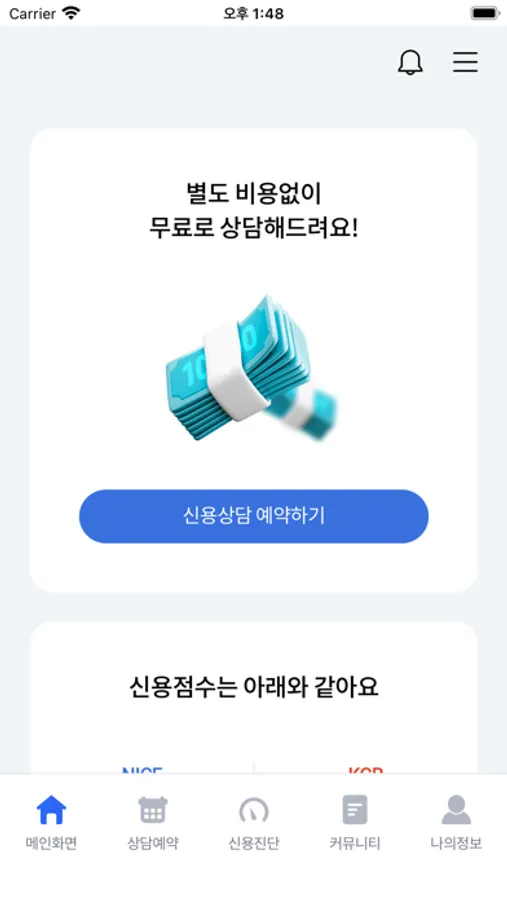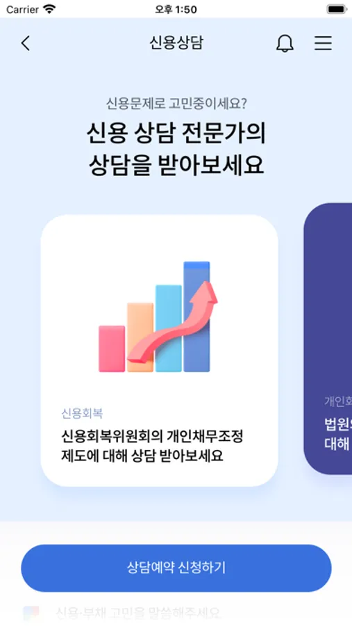 - 예약을 통해 원하는 시간, 원하는 신용상담기관과 무료 전화 신용상담
