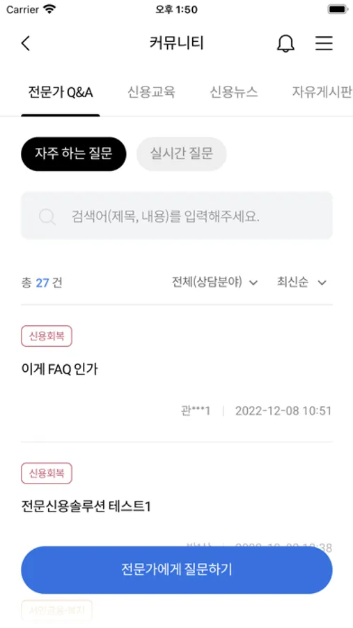 - 신용과 관련된 고민을 다른 분들과 함께 나누는 공간