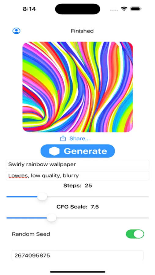 This app uses AI to generate images locally on device. No internet connection needed, all the processing power of the local device is used to generate an image.
