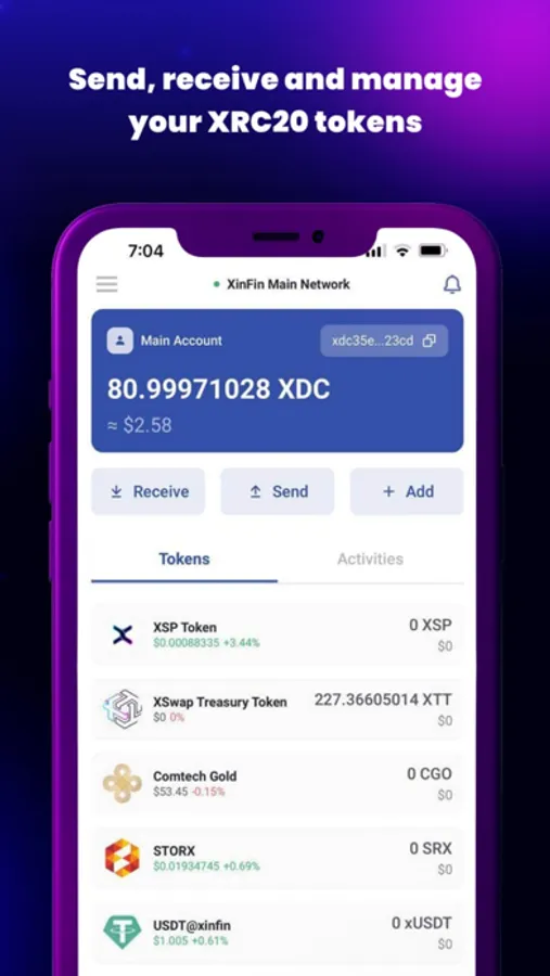 Send and receive XRC20 tokens across wallets at faster transaction speed and low transaction fees.