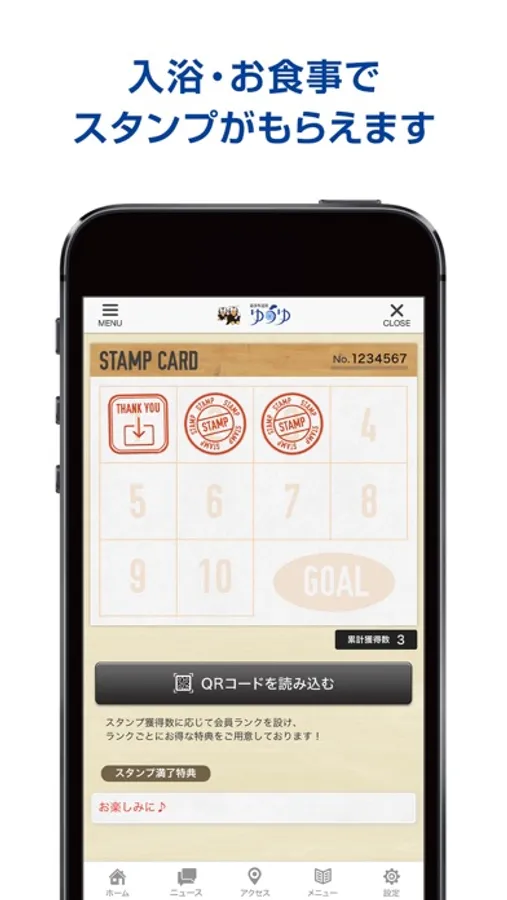 スタンプカードや入浴回数券がアプリになりました。その他にもイベントの最新情報やクーポンなどのお得な情報の確認ができます!