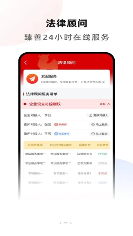 通过任务清单管理法律顾问服务事项,服务过程透明化。