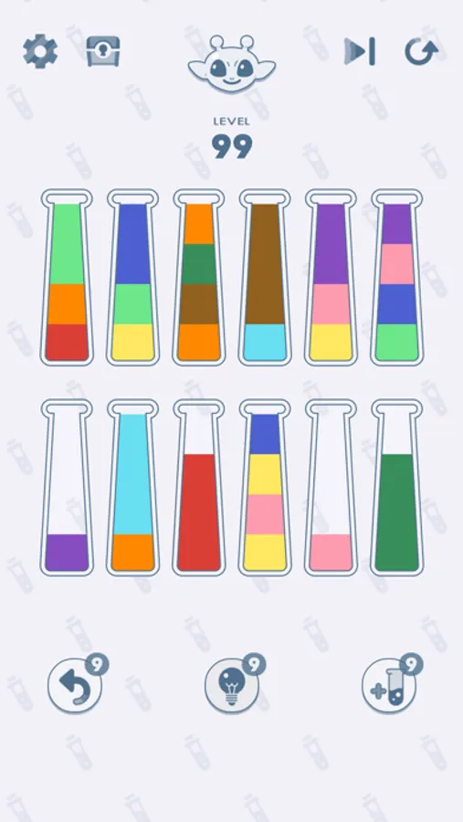 - Tap a test tube to pour its contents into another, and aim to make all the tubes the same color.