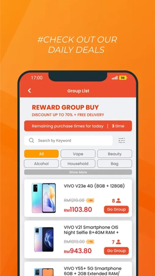 Go Shopping App is a group buy online shopping platform, where you can order genuine product, big brands, trendy products with the best price