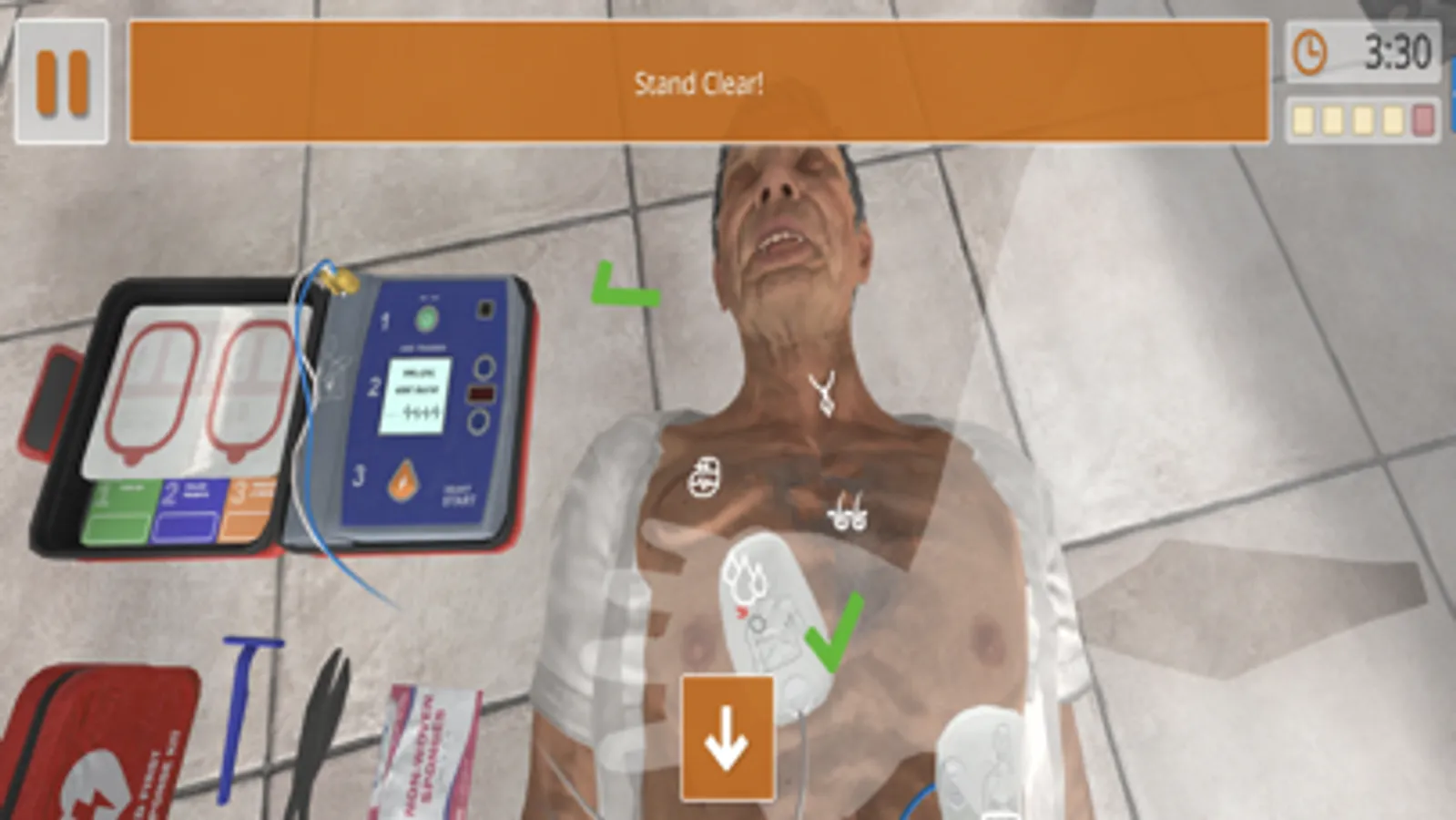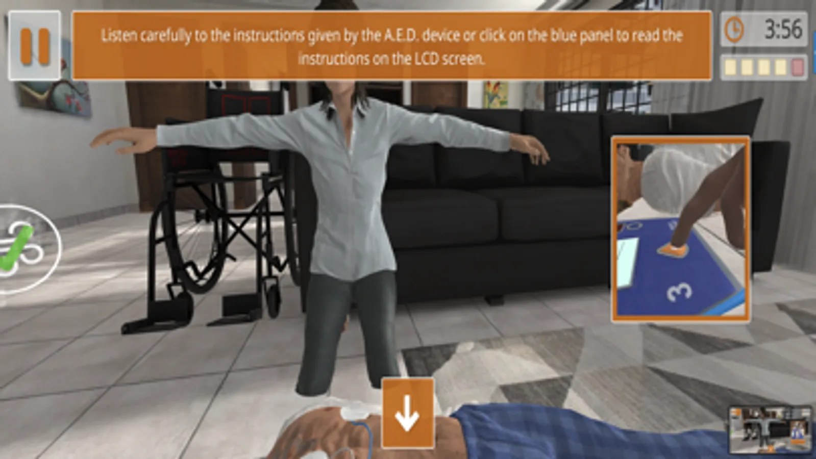 2MA-AED (2 Men Adult Automated External Defibrillator) Game is one of Pacific Meta’s BCLS (basic cardiac life support) games crafted to train on the use of the AED device on an adult in a home setting. The game leads the player through multiple scenarios to equip the player on the appropriate responses given these varying scenarios, working alongside a second rescuer. The 2MA-AED Game will help equip the player to operate the AED on an adult safely and effectively.