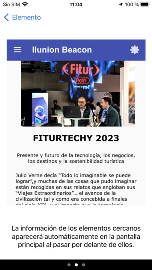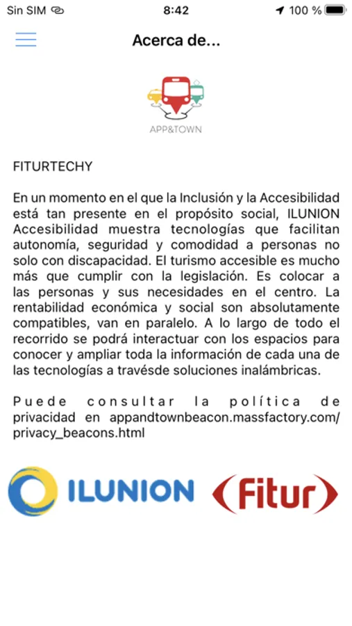 The ILUNION Beacon app uses App&Town Beacon technology, developed by Mass Factory, which allows the detection of nearby elements, through Bluetooth Low Energy Beacon technology. This allows all people to receive information about each item directly on their mobile. It can be used as an audio guide service, as well as an indoor guidance system, using this app.