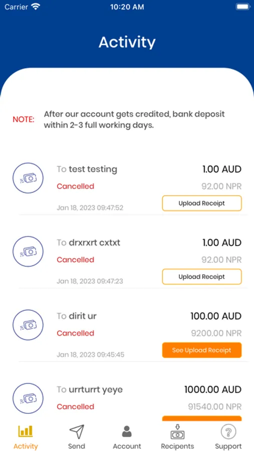 Send money from your bank account. Just transfer and track your transfer status in real-time in your account.