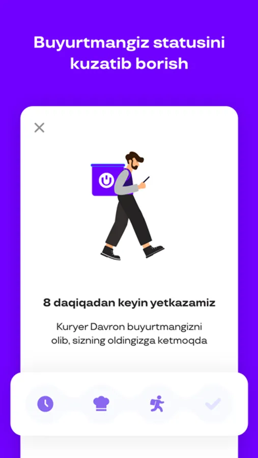 Ilovada onlayn buyurtma holatini kuzatish imkoniyati mavjud. Buyurtmangiz restoranga topshirilganda yoki kuryerdaligini bilib turasiz.
