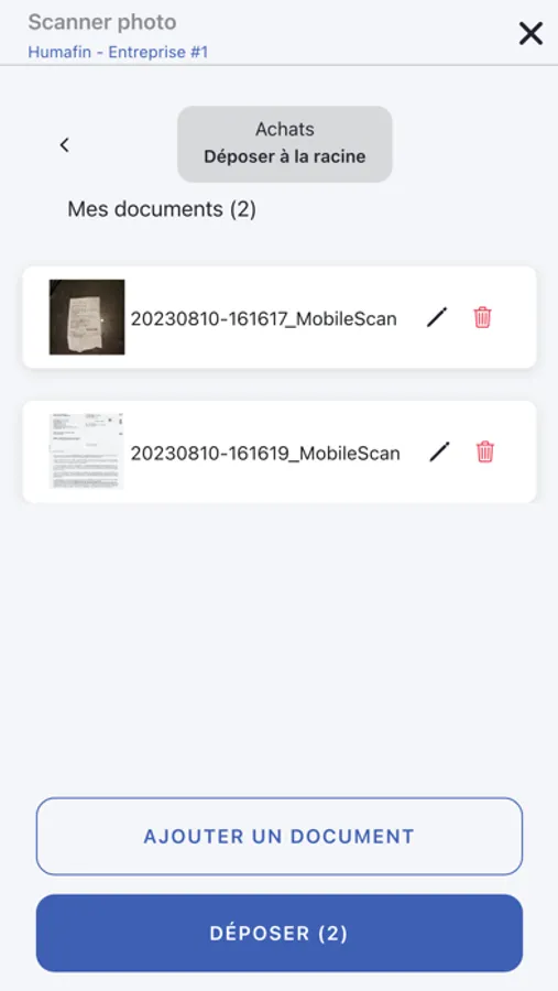 L'application Humafin permet aux utilisateurs de scanner leurs documents depuis leur smartphone et de les envoyer directement sur la plateforme.