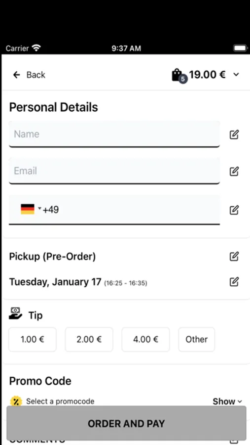 - Durchsuchen Sie die Speisekarte des Restaurants und sehen Sie sich alle anpassbaren Optionen im Voraus an