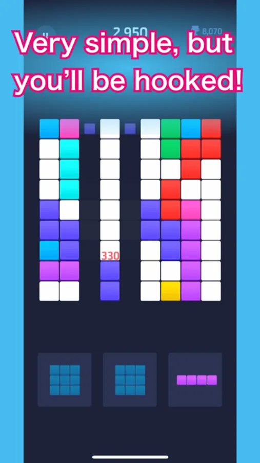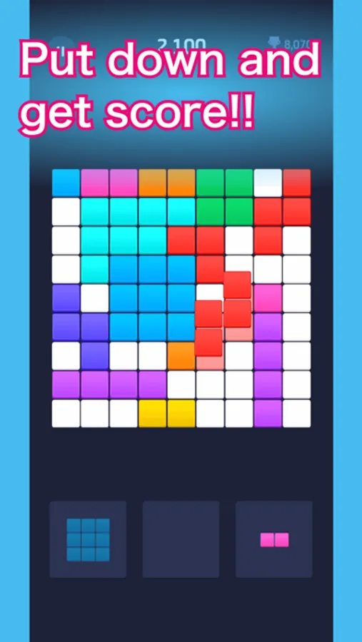 When a row or column is filled with blocks, either vertically or horizontally, you get a score.