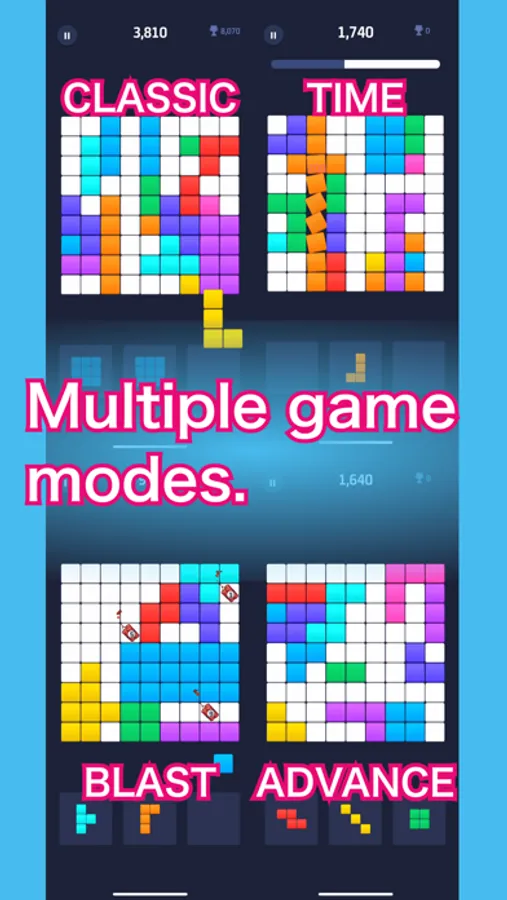 By selecting your favorite theme from multiple themes, you can change the color and shape of the blocks.