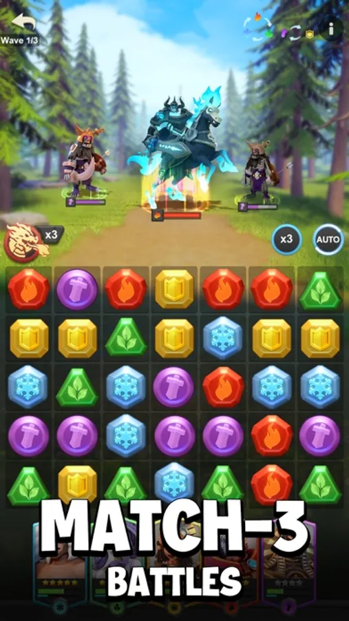 - Recruit real heroes and combine their unique skills to defeat the enemies and defend your kingdom in match-3 battles