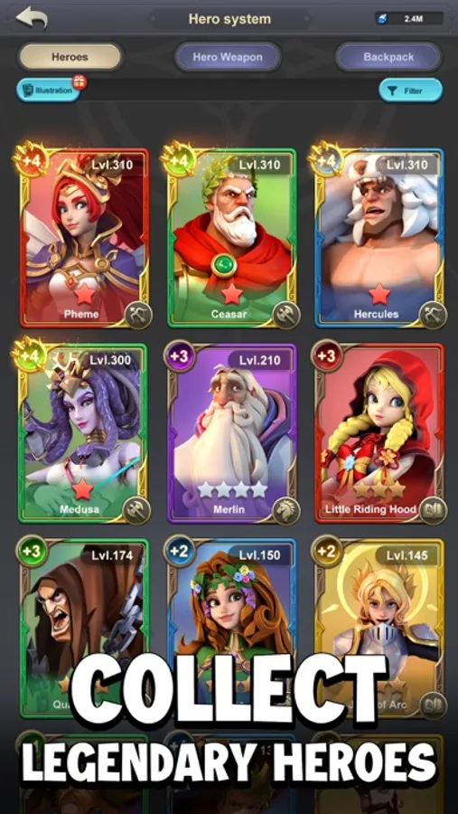 Meet historical heroes from different eras and myths in this new 4x march battle war game and build the strongest kingdom on the map.