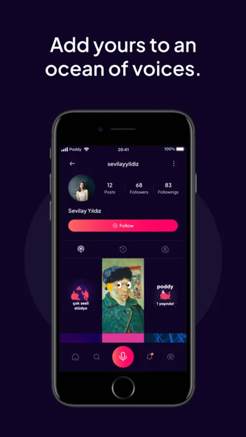 *Start recording your short content that you can create up to 60 seconds. Whatever you want to announce, cut and save instantly. Share your voice with the world.