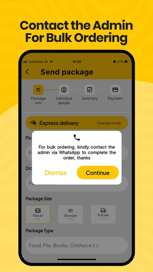 Our platform connects you to a network of professional dispatch riders and car drivers within minutes who will get you your items or food.