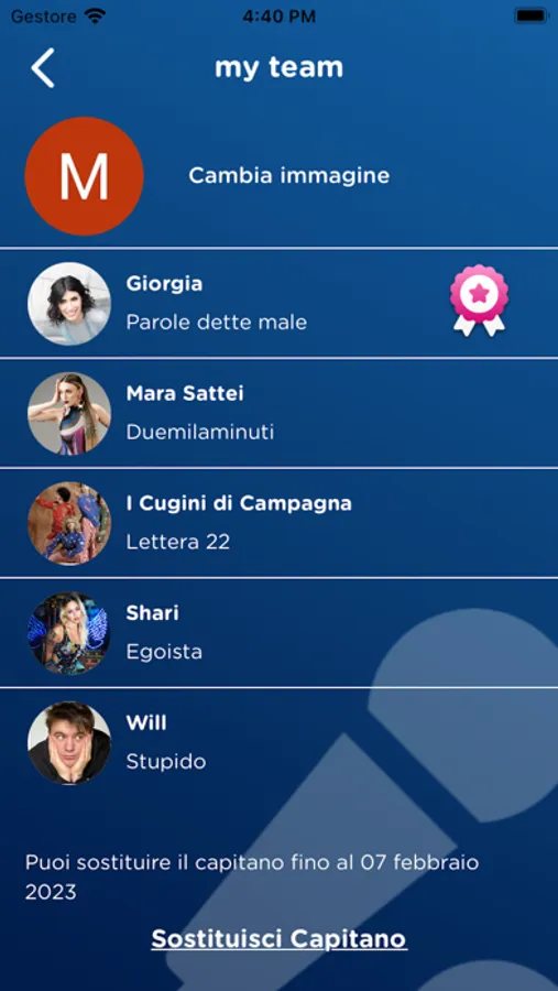 Per poter giocare è necessario comporre una squadra di 5 artisti. Hai a disposizione 100 FantaMonete con le quali puoi acquistare i tuoi idoli e nominare un capitano.