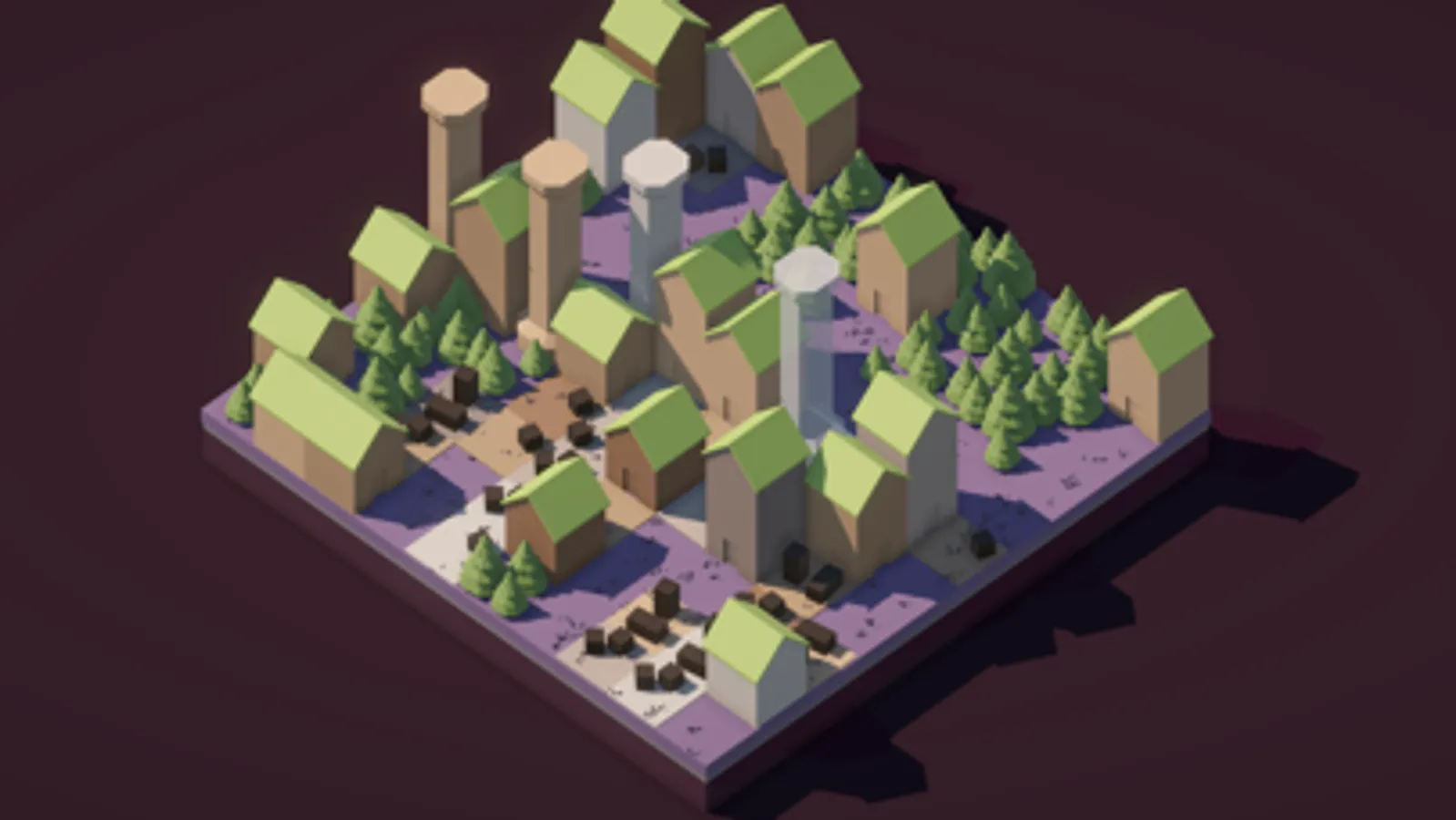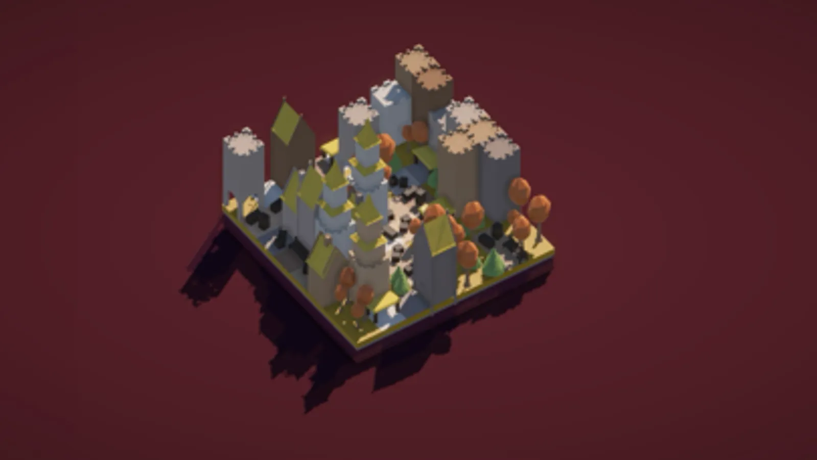 When you start the game gives you a 4x4 up to 12x12 block island, and the colors of the Roofs, Water, Grass, and Trees, are randomly picked.