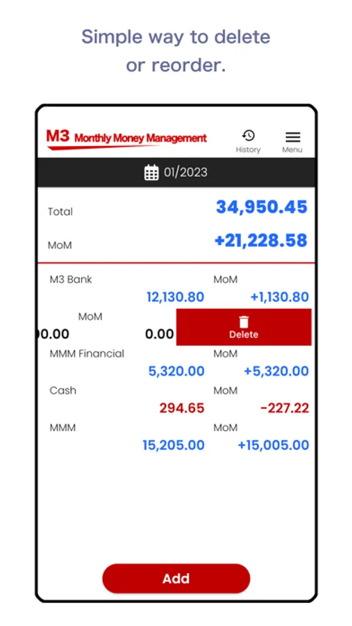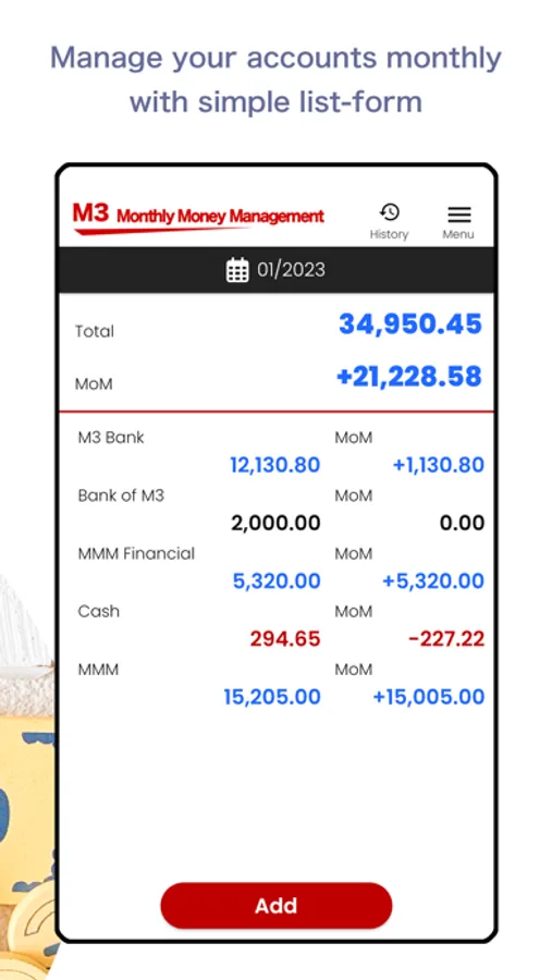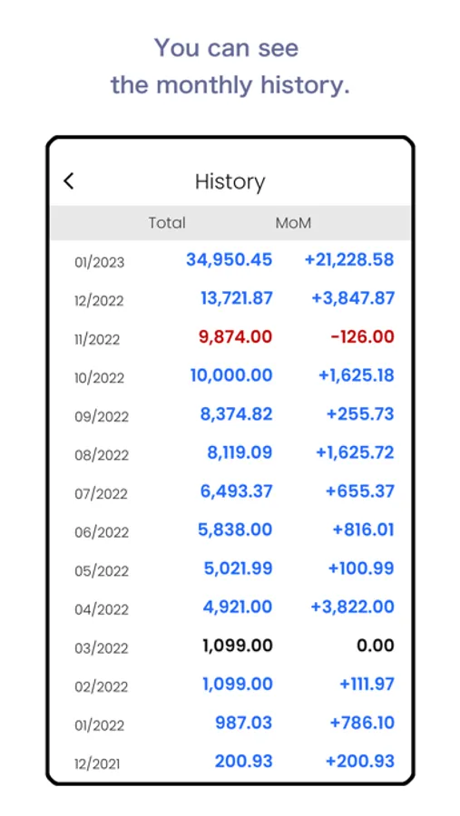 That's it! Then, you can see your asset's total, MoM and monthly histories in list-form.