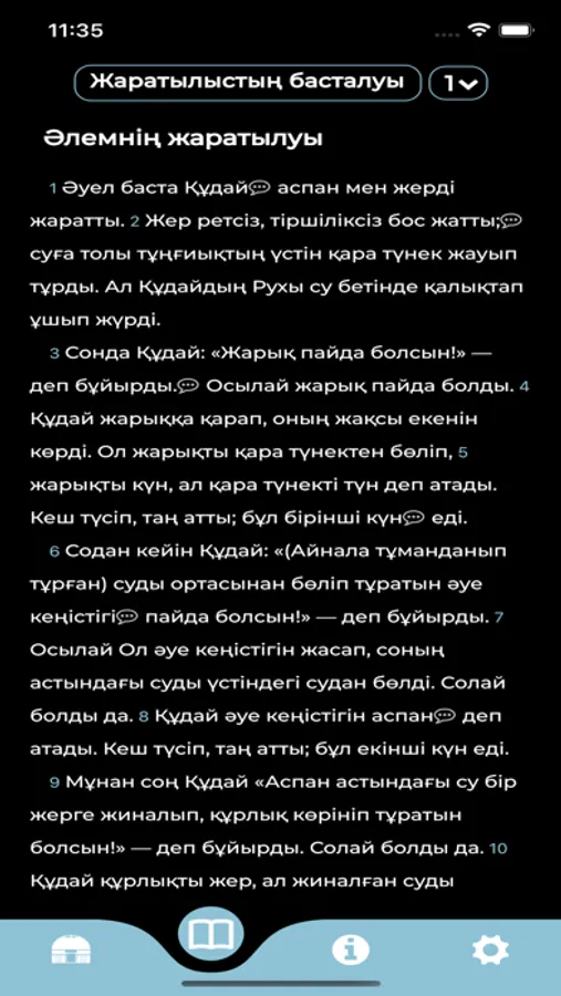 The Kieli kitap (Holy Book) is God’s Word, mankind’s exceedingly precious heritage. In the whole world, believers in the Most High God revere its Holy Writings and regard them as His sacred revelations. In the course of history, the Bible has directly or through other books exerted great influence on literature and science, our laws, customs and traditions. We are sincerely grateful to the Creator Lord that He has given us the privilege to read His Holy Scriptures in our mother tongues and become closely familiar with its beneficial content. Through the Holy Scriptures we learn about the character of the Most High, about the vast universe that He created, and about His merciful intentions for mankind. Those who put their faith in Isa the Messiah, who was sent to the earth by the Most High, and live according to His will as it is laid out in His Holy Book, become spiritually new persons. Their character and behaviour are being cleansed from evil traits and thoughts. Such people are a great asset for their country and nation. This app also includes the following study tools: - Glossary (explanation) of important Biblical terms, - Concordance (collection of phrases from about 30,000 Bible verses under 3,540 head words and phrases), - 15 chronological and topical tables. May God Almighty bless our whole nation and guide us to thoroughly study His Holy Book and receive its beneficial teaching! Amen. On the internet, the Kazakh Bible can be found on this website: https://kkitap.net/?lang=en