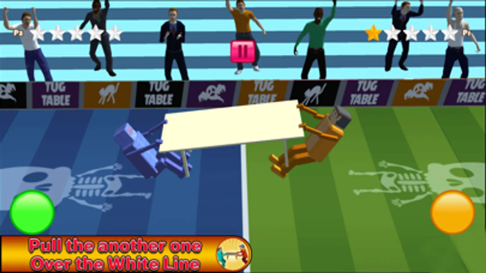 Tug the Table is a simple funny competitive game. Yes, though it looks funny, it really a competitive game...Blue and red colors are the classical character pairing from a very early time. There are two little people in blue and red in color. The only things you need to do is handling one of them, and pull another one over the white line.