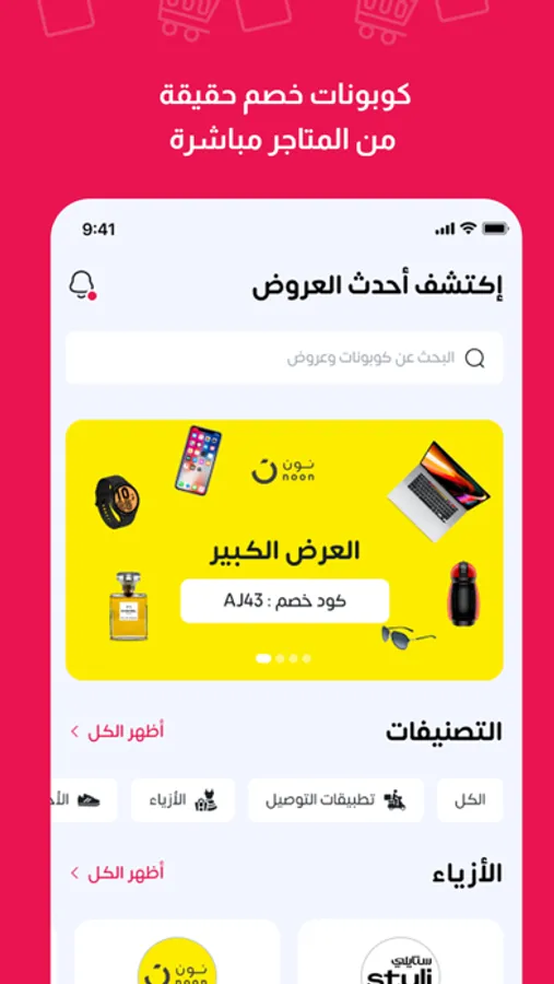 حيث يتيح التطبيق عرض للكوبونات بطريقة سلسة وبشكل واضح وتصنيفها لتصنيفات مختلفة لتسهيل عملية التصفح
