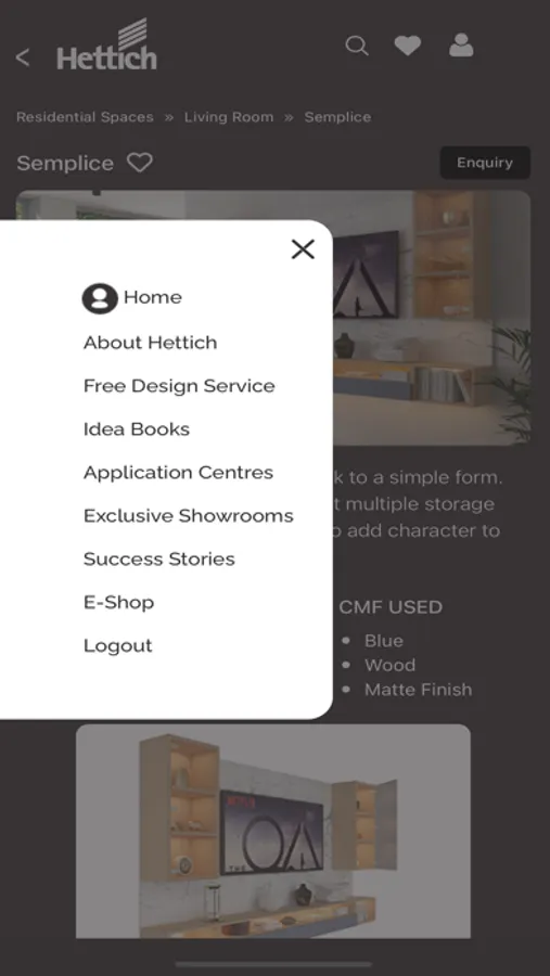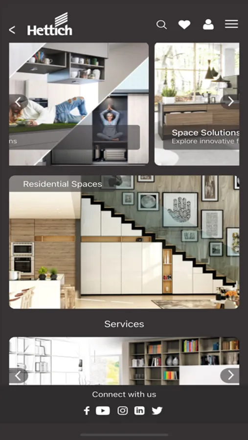 Explore trend-setting furniture designs made with Hettich fittings. Hettich Design Gallery App is your one-click destination for contemporary furniture design possibilities powered by cutting-edge Hettich fittings for all your residential spaces. The app showcases a range of design concepts for each residential space - be it the kitchen, bedroom, living room, kid’s room, vanity, or hallway, thereby providing holistic solutions for your dream interiors. For those longing for more design options, a collection of Idea Books encompassing many more trendy concepts is also hosted on the app. Apart from design concepts, the app also enables one to tag his favourite concept and send an inquiry for the same. And for those who are smitten by the trendy concepts and wait no longer, can go to the Hettich e-shop directly from the app and buy the relevant fittings to create their selected furniture concept