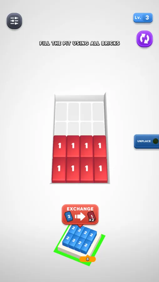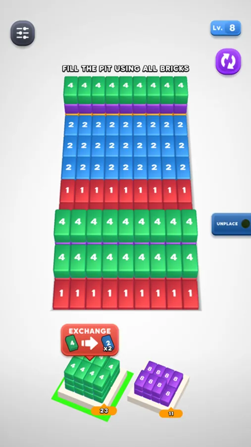 Choose a suitable brick and fill the grids. Don't worry! If you play wrong, you can undo.