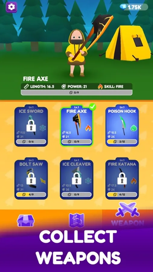 Collect and upgrade over 20 unique weapons, featuring elemental powers such as fire, poison, and ice. Progress through the game and unlock new and powerful cards to add to your collection. Customize your weapon to suit your play style and fine-tune it in the weapon store to create the ultimate weapon.