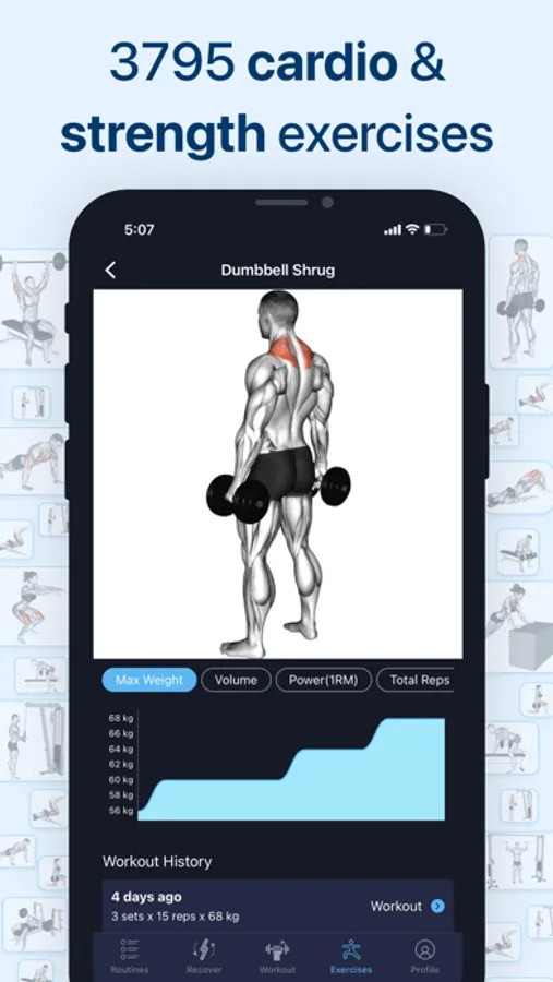 Workout AI has 3700+ exercises, including dumbbell and bodyweight home exercises.