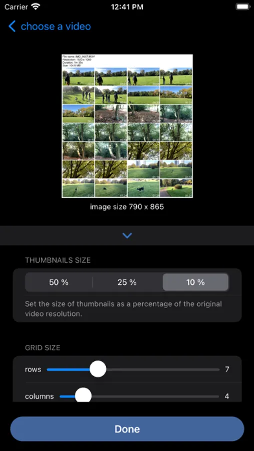 Simply select a video from the photo library or from your iphone files and specify the type of layout you want (the size of the thumbnails, the number of rows, columns, etc ...)