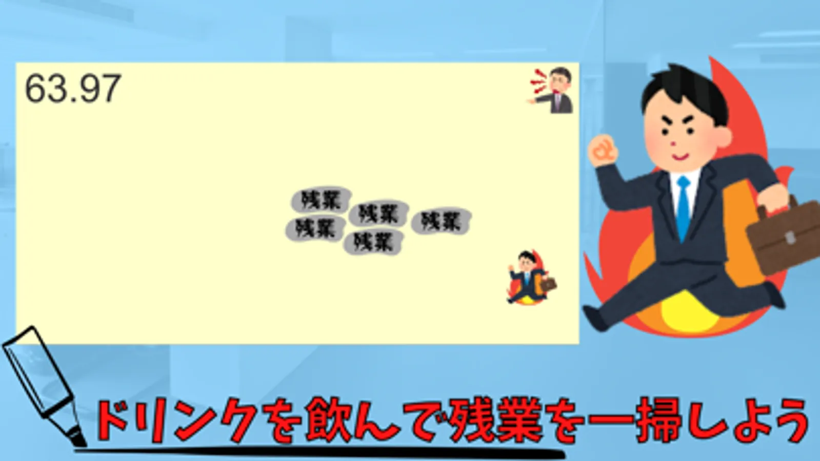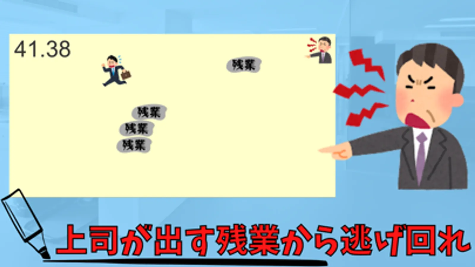 プレイヤーを操作して、追いかけてくる「残業」から逃げ回ろう!