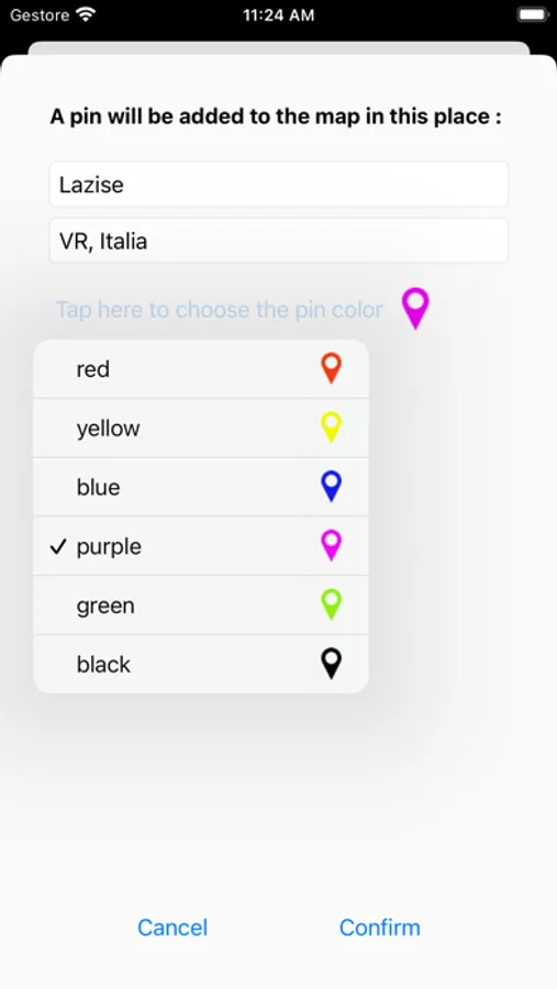 To help the user find the desired targets more easily, it is also possible to insert colored pins above the map.
