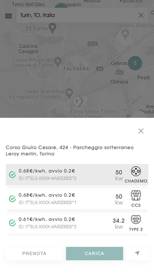 – Possibilità di trovare il punto di ricarica più vicino sulla mappa