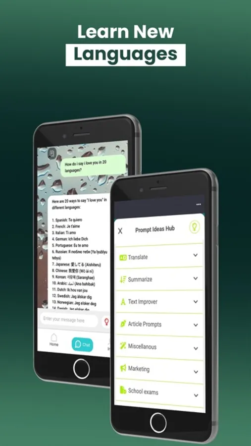 ● Creative Writing: Generate unique text, emails, code, and more with Chat AI App.