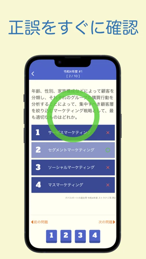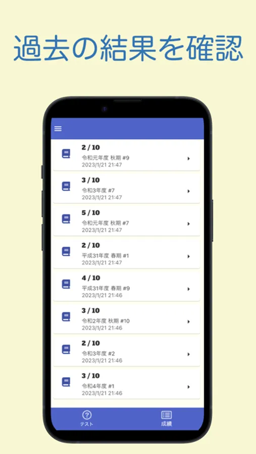 実施した問題については履歴から確認し、間違った問題を復習できます。