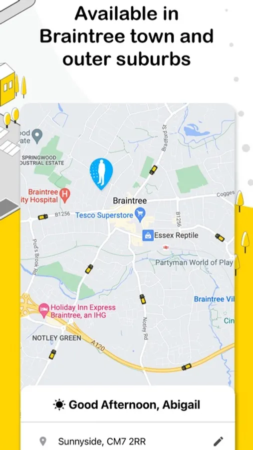 • Faster response times. Get picked up in minutes by a nearby Happicab taxi in Braintree.