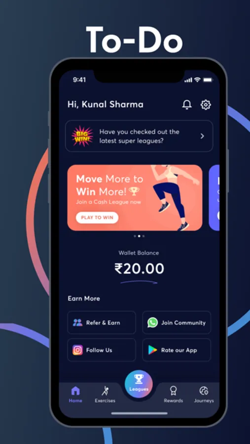 With Radian Move you can join Leagues, compete with other users, and earn cash prizes or rewards up to Rs. 30,000. We have two types of leagues, the first is the Super Leagues which are our pay-to-play leagues and the second is our free leagues to encourage you to be competitive while staying healthy while doing so.