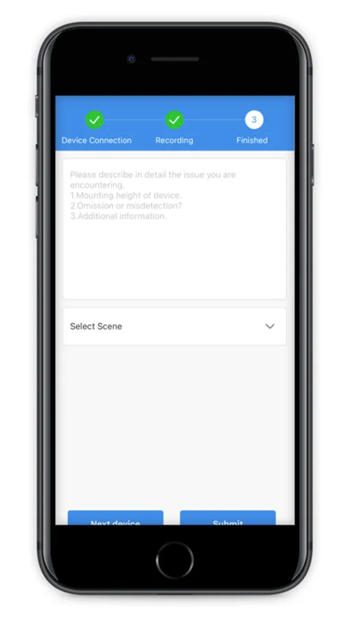 The M-Scene App is a smart tool to solve problem of Milesight devices, submit recognition problem feedbacks and track progress of feedbacks easily. For example, when there is a false/missing detection problem with VS121(AI Workplace Occupancy Sensor), you can use it to record easily, submit feedback and track the progress of the feedback to help you solve the problem quickly.
