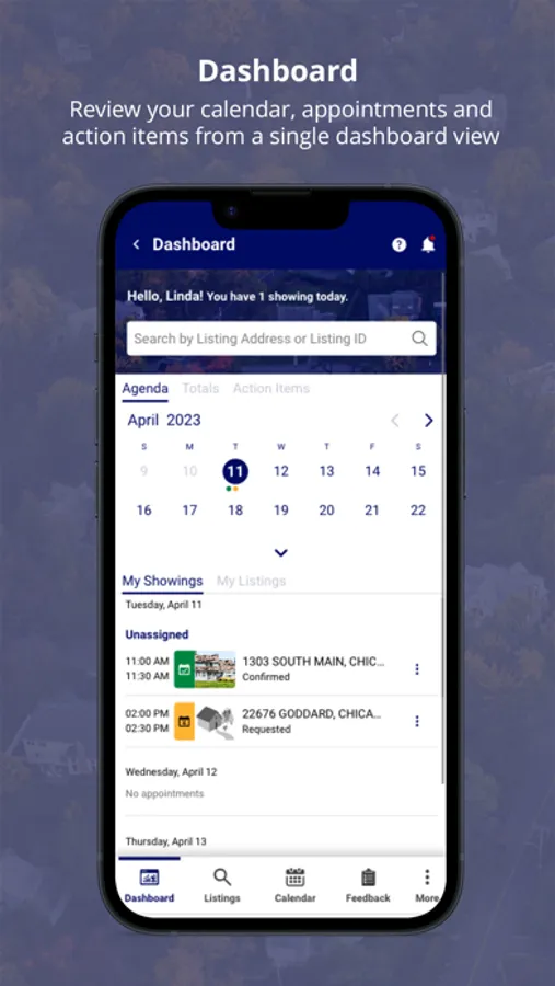Personalize Your Experience: With a variety of interactive calendar views, you can view your showing appointments in the way that best fits your needs. Additionally, customize your viewing experience with multilingual support, or toggle between light and dark mode to fit your preferences or the time of day.