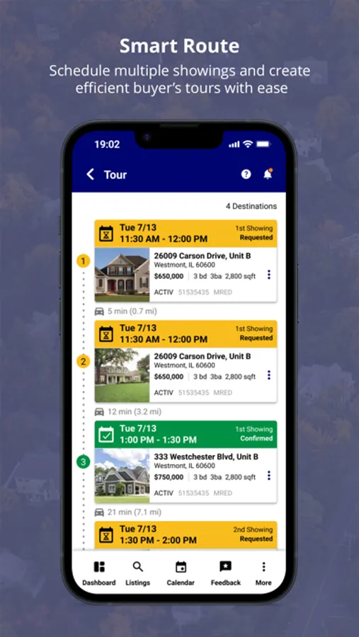 Effortlessly Schedule and Access Showings: Take control of your busy schedule with our intuitive mobile app. Seamlessly schedule showings, view instructions and access vital details anytime, anywhere. Buyers’ agents can plan a tour in minutes with an optimized Smart Route, adding multiple properties to a tour directly from the MLS and placing them in a cart.