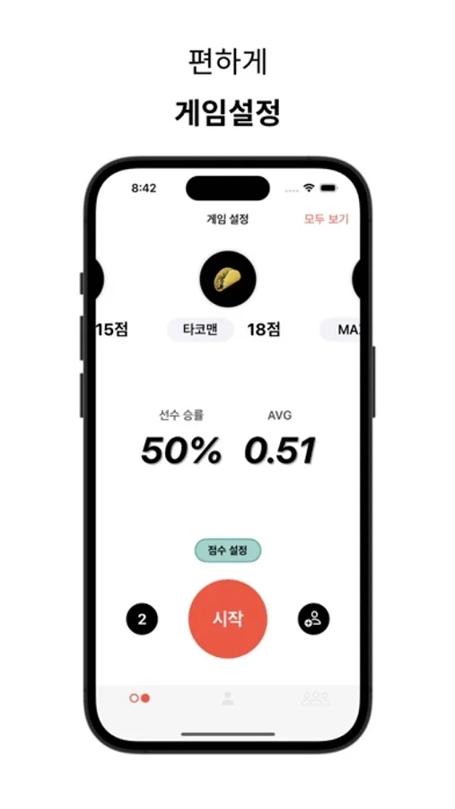- 이름, 프로필, 점수를 설정하고 경기를 진행해 보세요