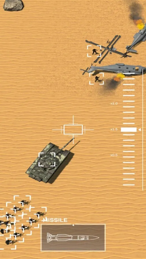 Engaging shooting game from the perspective of a drone. Protect your base or unit from incoming enemies by shooting them down with your weapons.