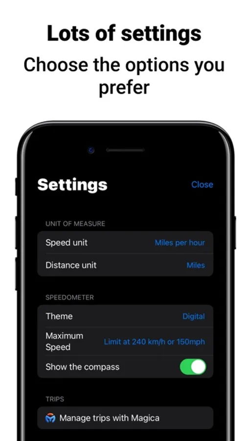 You can choose between speed units: kilometers per hour, miles per hour, meters per second and knots.