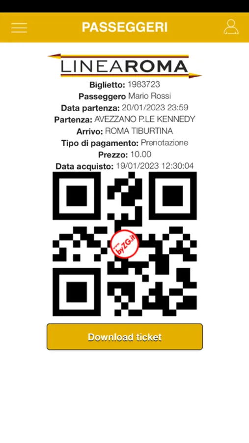 Visualizzare il tuo biglietto ed utilizzarlo come prova di acquisto;