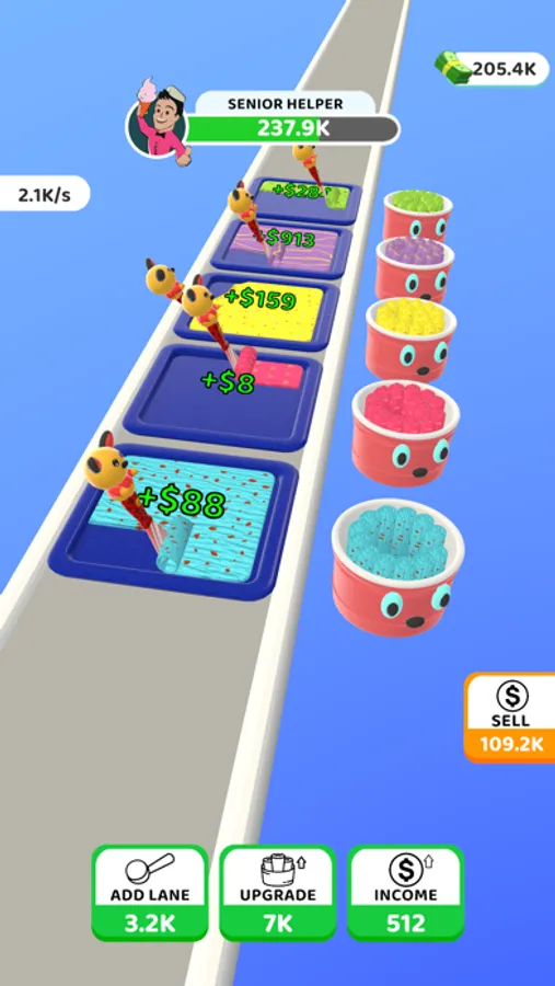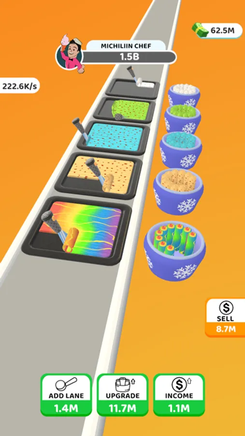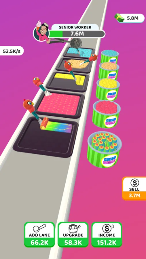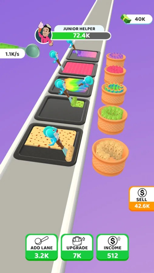 The controls are simple, tap tap to make faster and click the upgrades to add more lanes, upgrade flavours and income. You can sell the ice cream rolls by just tapping Sell button.