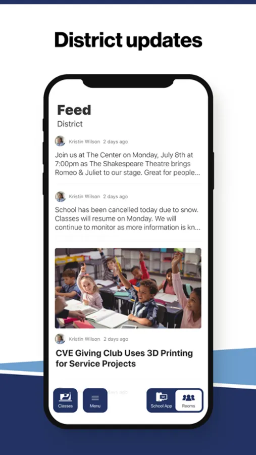 In the Live Feed is where you'll find updates from the administration about what's going on in the district right now. Whether that's celebrating a student's success, or reminding you about an upcoming deadline.