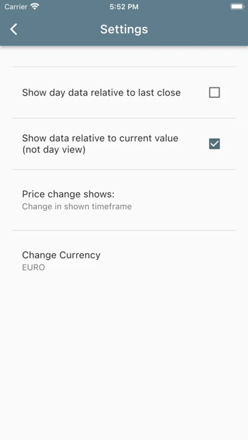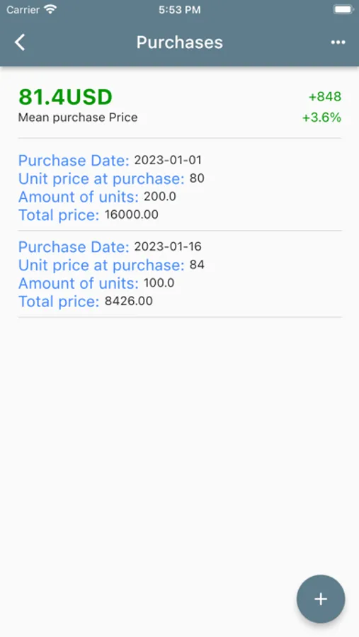 Purchases can also be saved in the app, so that the differences since purchase are displayed.