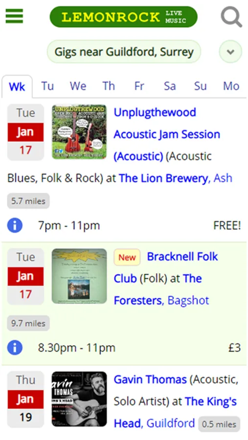 Lemonrock Gig Guide shows you where your nearest live music gigs are.