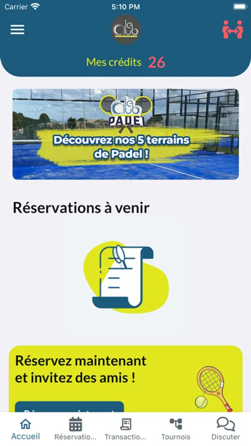 Notre application de réservation de terrains de padel est la solution idéale pour tous les amateurs de padel qui veulent jouer régulièrement sans avoir à se soucier de la recherche de terrains disponibles. Vous pouvez également inviter vos amis à jouer avec vous, ajouter des joueurs supplémentaires à votre réservation et gérer toutes vos réservations à partir de votre téléphone. Notre application de réservation de terrains de padel est facile à utiliser, rapide et pratique. Avec des fonctionnalités telles que les réservations en temps réel et les notifications push, vous êtes assuré de ne jamais manquer un match. Téléchargez maintenant notre application de réservation de terrains de padel et rejoignez la communauté de padel ! Profitez également de notre chat intégré pour organiser des matchs avec notre communauté ou des amis directement depuis l'application.